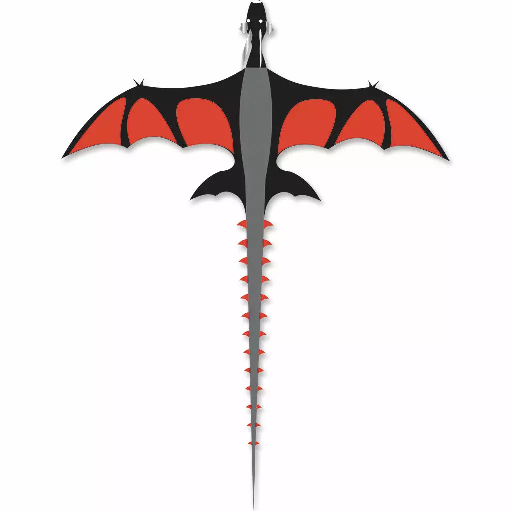 The Giant Dragon, created by the brilliant German kite designer Cartsen Domann, is a huge and powerful 3-D flying representation of this popular mythical beast. It is by far the largest framed production dragon in existence and presents a far more impressive flight profile that any typical inflatable dragon can obtain. Massively strong 10mm diameter Excel carbon rods sustain this creature’s huge 14.5 foot wingspan and the main chassis framing is constructed with Sky Shark wrapped carbon tubes.
