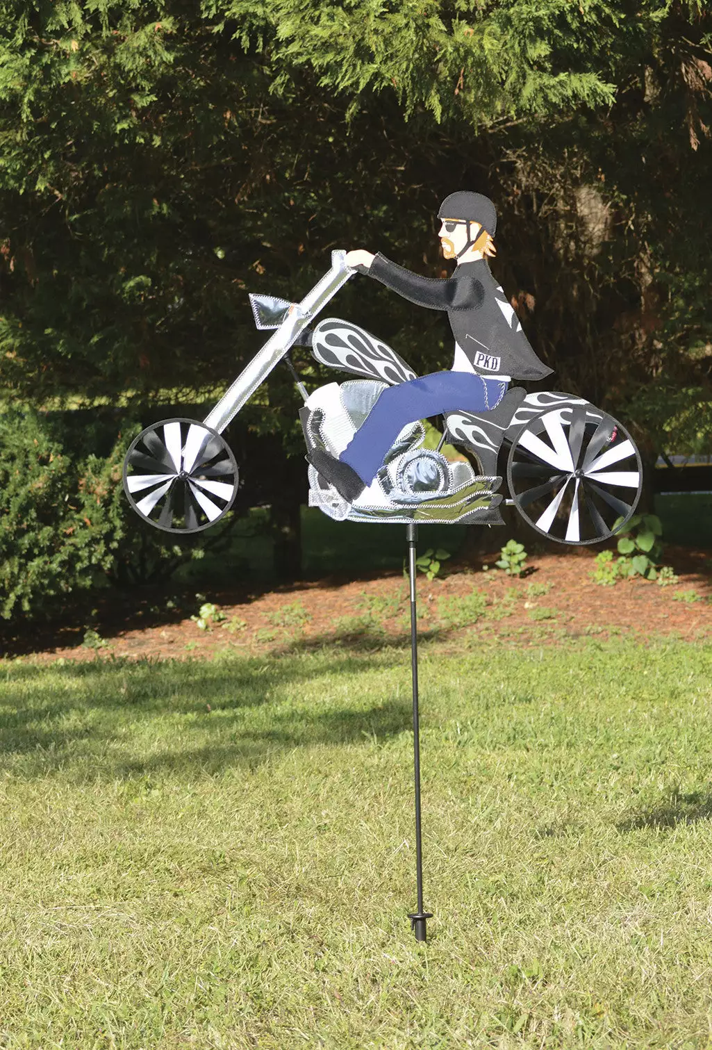 This motorcycle is nicely detailed with a twin “V” engine, dual exhaust and extended rake. This “ape hanger” will be a rolling thunder on any lawn or garden.